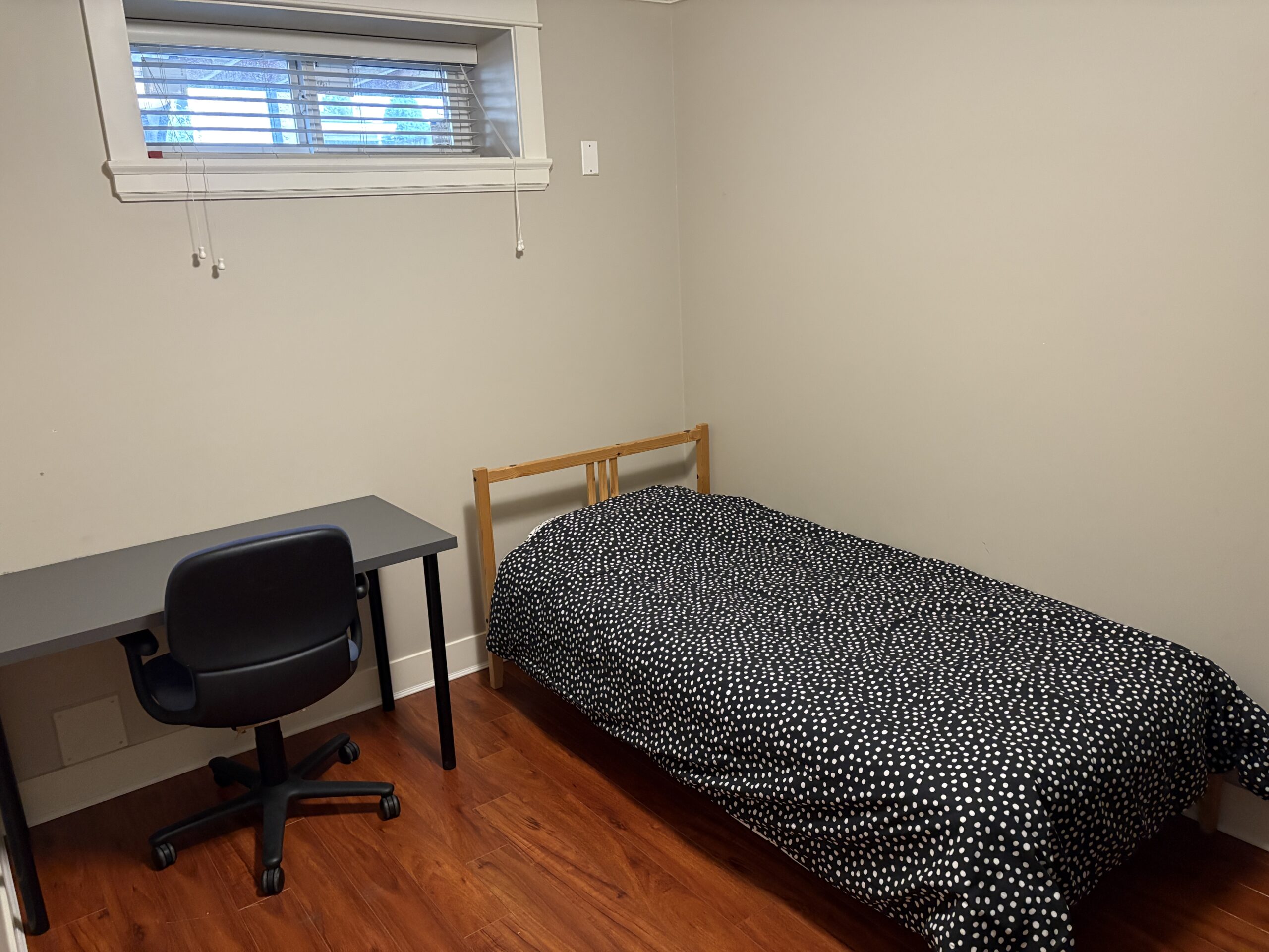 2階建ての一軒家のベースメント部分の3ベッドルーム+1バスルームの物件です。