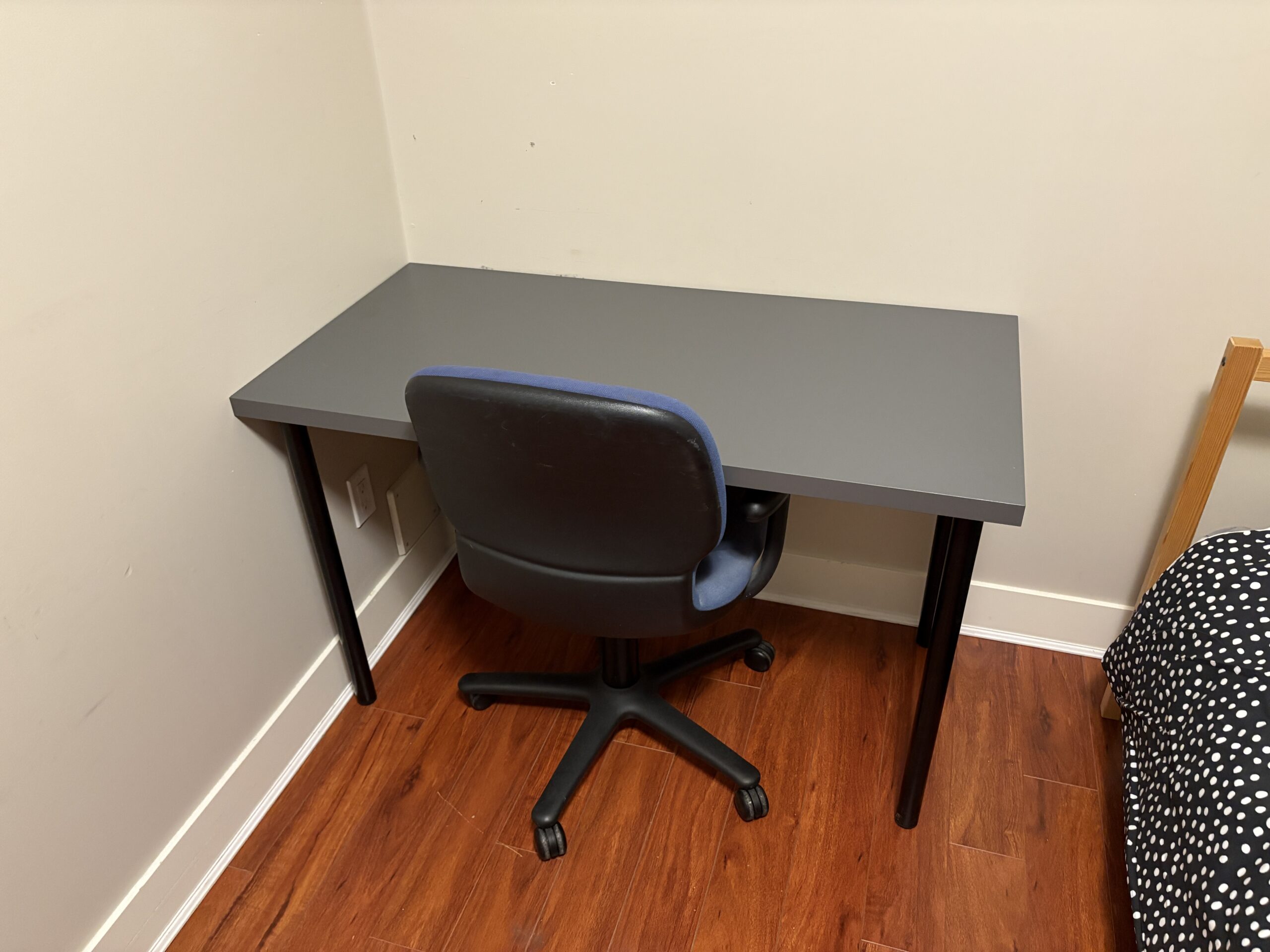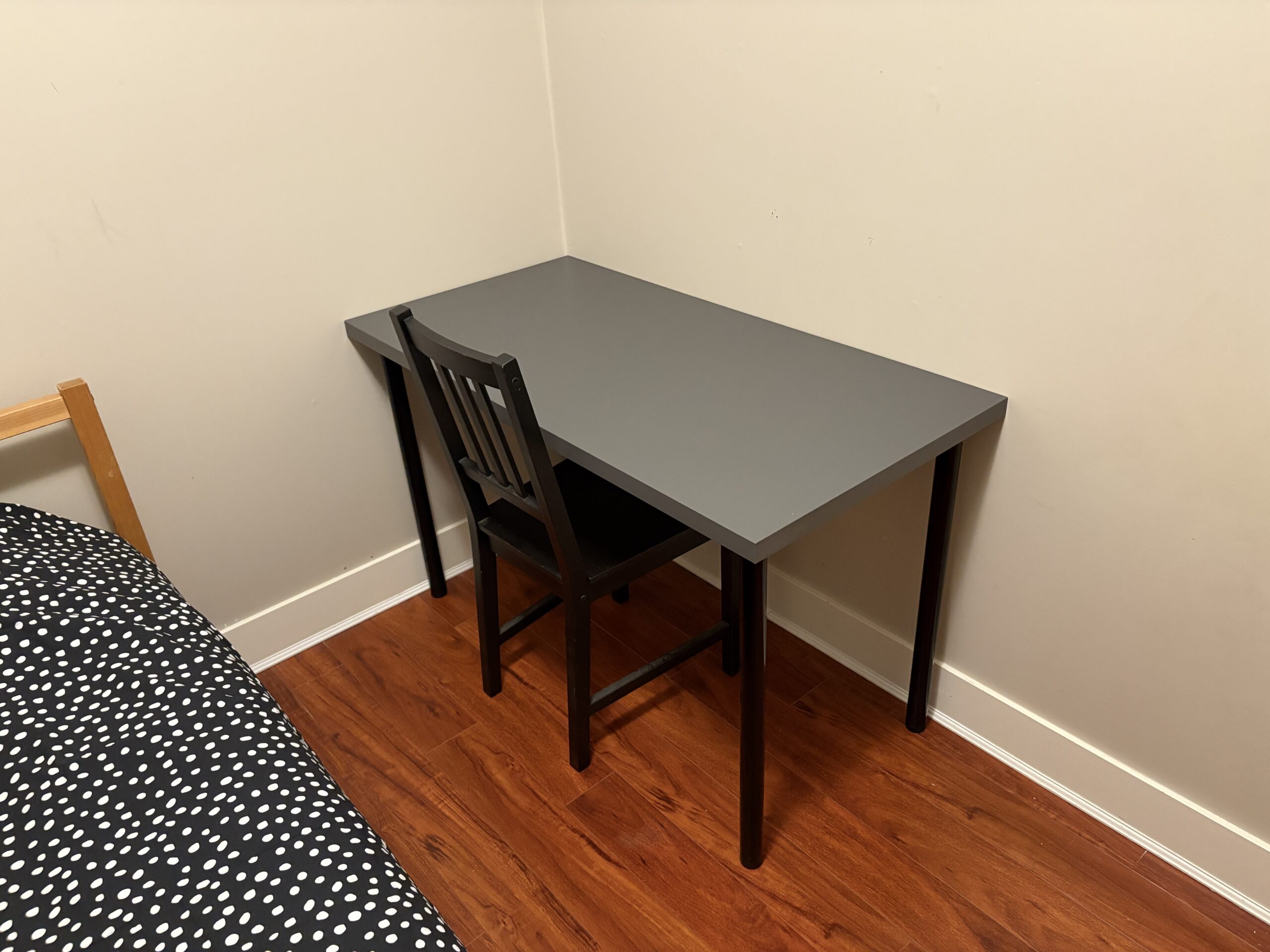 ベッド、机、椅子、クローゼット、窓、ヒーター